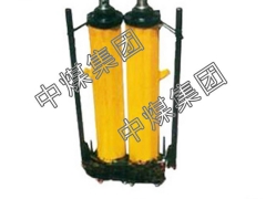 YT4-8A液压推溜器实用新型涉及到矿山溜槽移动装置,是一种液压推溜器。其结构为缸体外壁的前部和后部同向分别固定装有前液压阀和后液压阀,在两阀之间的缸体外壁相对的两侧固定装有定位轴;缸体通过定位轴座落在固定座上的纵向长孔内;固定座的底部固定装有底板,底板靠近活塞杆一端向上翘起;固定座的顶部固定装有呛顶座,呛顶座上部的槽形结构向后倾斜,并与水平面成20°-24°夹角。