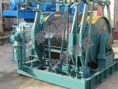 运输绞车主要由隔爆电动机1、滚筒2、偏心轴3、小内齿圈4、抱闸5、刹车轮6、大内齿圈7、双联齿轮8、支承架9及底座10等组成。均采用行星齿轮传动,绞车具有结构紧凑、刚性好、效率高、安装移动方便、起动平稳、操作灵活、制动可靠、噪音低等特点。