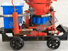 矿用湿喷机是目前国内外降低粉尘、减少回弹、节约材料等综合性能较好的锚喷支护机具。矿用湿喷机是工程施工中广泛使用的一种施工设备,它是利用压缩空气或其他动力,按一定比例配合的搅和料通过管道输送并高速喷射到受喷面上凝结硬化,从而形成混凝土支护层,喷射混凝土技术简便,施工造价低,适应面广,作业粉尘小、喷射回弹少、保护工作环境、节省原材料、提高喷层质量等在各种 建筑领域内发挥了重要作用。