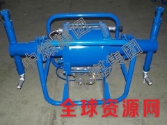 气动注浆泵结构紧凑,体积小,移动方便,直接放置在比较平整的地面上即可;泵的进出口均采用快插接头,连接吸排料管方便快捷,而且密封可靠;泵的动力为压缩空气,能够改变压气的流量进行无极调速;气动马达带动三个活塞泵,马达和三个活塞 泵的活塞面积比为28:1,决定了进气压力和输出压力比为1:28,能够定比例的高压输送两种液体。