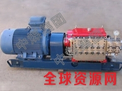 喷雾泵组为卧式三柱塞往复泵。由三相交流四级防爆电机驱动,经一级齿轮减速,带动三曲拐曲轴旋转,再经连杆、滑块带动柱塞作往复运动,使工作液在泵头中经吸排液阀组吸入和排出,从而使电能转换成液压能,输出压力水供采煤机使用。